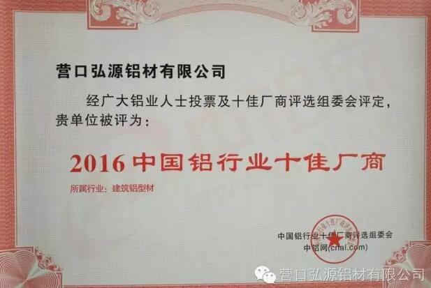 熱烈慶祝我司被譽(yù)為2016“文明誠(chéng)信私營(yíng)企業(yè)” [2016-12-26]遼寧營(yíng)口弘源鋁材有限公司經(jīng)營(yíng)范圍:生產(chǎn)工業(yè)型材,民用型材